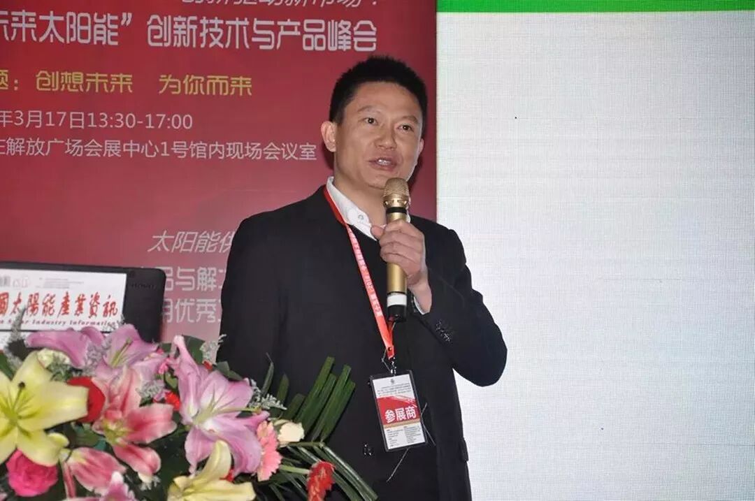 ▲光熱制造總監(jiān)唐文學現(xiàn)場作《平板太陽能集熱器在北方采暖運用》主題報告